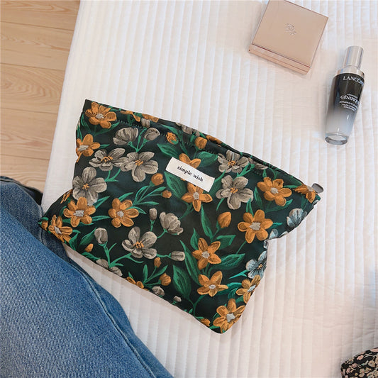 Vintage Floral Jacquard Canvas Cosmetic Bag