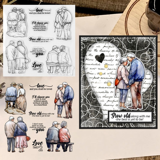 Elderly Loving Couple Walking Clear Stamps