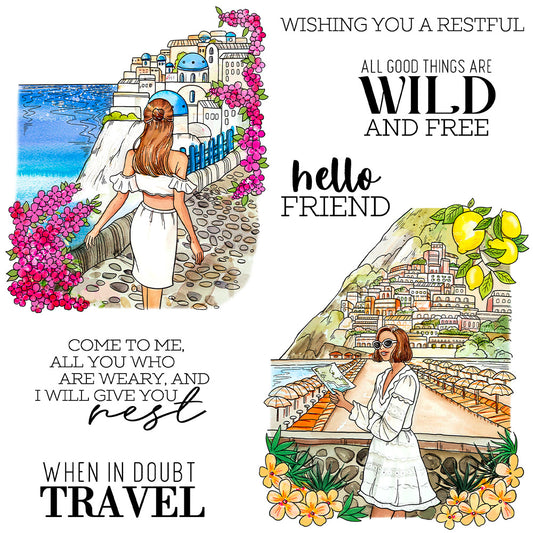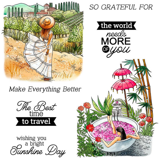 Summer Vacation Travel Girl Dies & Stamps Set