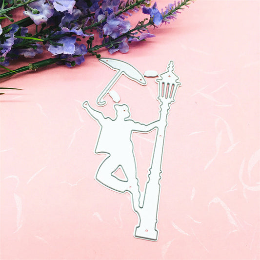 Man Holding An Umbrella And Leaning On The Street Lamp Railing Cutting Dies