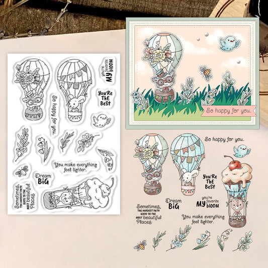 Cute Animal Hot Air Balloon Clear Stamps