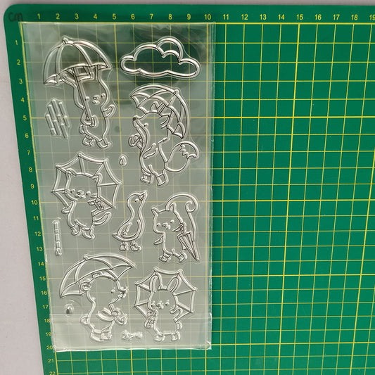 Animals Holding Umbrellas On Rainy Days Dies & Stamps Set