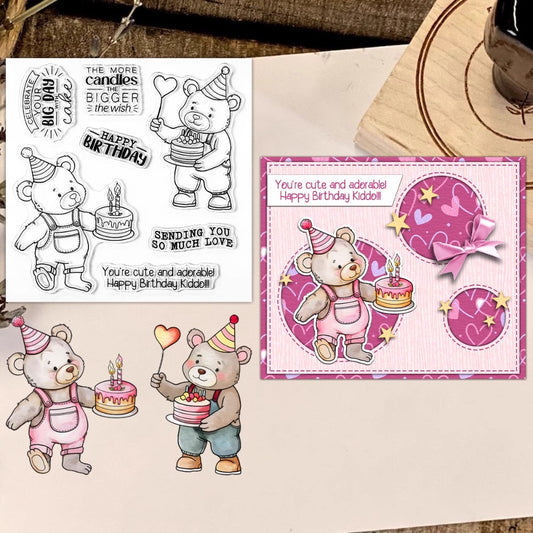 Cute Bear Celebrating Birthday Dies & Stamps Set