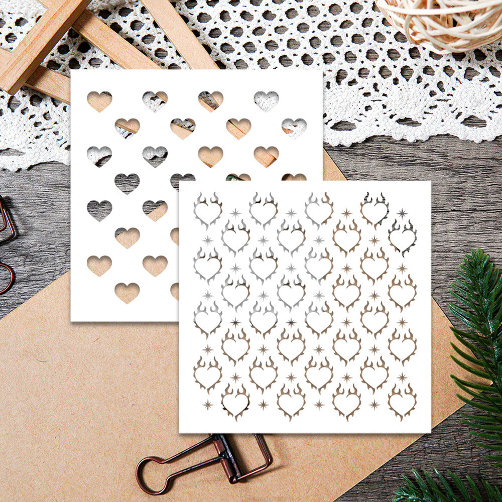 2 PCS Heart Pattern DIY Painting Hollow Stencil